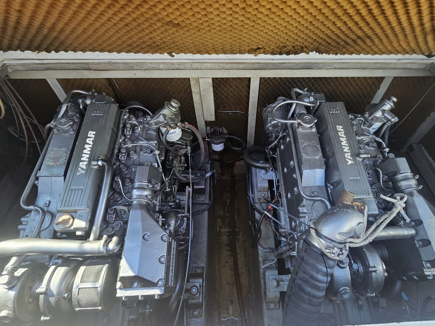 Eslora total 9 m. Manga 3 m. Motores 2 x 140 YANMAR